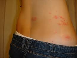- 붉은 발진이 띠 모양으로 나타남