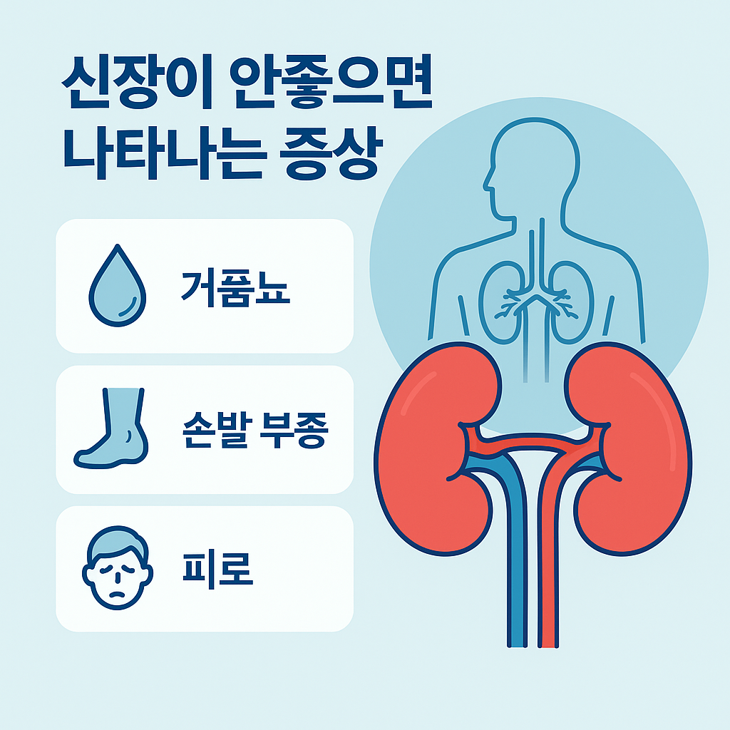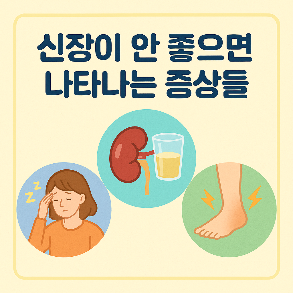 신장이 안 좋아질 때 나타나는 증상은 생각보다 전신에 퍼져 있습니다. 어딘가 한 곳만 아픈 게 아니라, 몸 전체 컨디션이 조금씩 무너지는 느낌에 가까워요.
